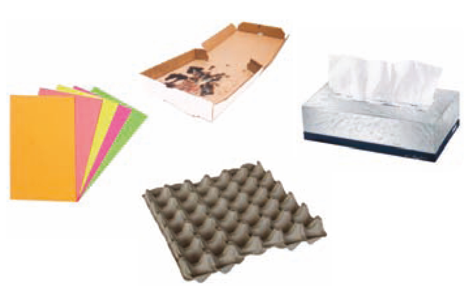 کتاب های با جلد گالینگور، جعبه های پیتزا وهم چنین سایر جعبه های نگهداری مواد غذایی که به مواد غذایی آغشته شده اند, دستمال و حوله های کاغذی و...به دلیل آلودگی و یا ترکیبات شیمیایی غیر قابل بازیافت هستند. دلیل اصلی این مسئله هم هزینهی بالا برای بازیافت هرکدام است یا در زمینه ضد عفونی یا رنگ زدایی و ... هزینه ای که باید صرف شود در مقابل صرفه جویی تولید کاغذ مقرون به صرفه نیست. شانه تخم مرغ هم خود محصول بازیافت است و بازگشت به این چرخه کیفیت کاغذ باز یافتی را به شدت پایین میاورد.